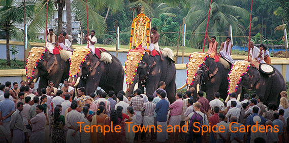 Temple Towns and Spice Gardens - The South has the most exotic temple towns, soaked in thousand-year-old traditions. The landscape is equally beautiful, lush green paddy fields and swaying palms on the emerald coast.