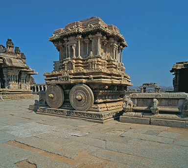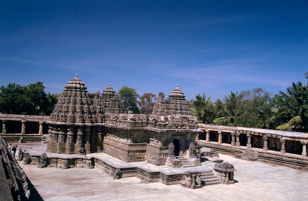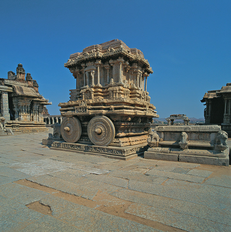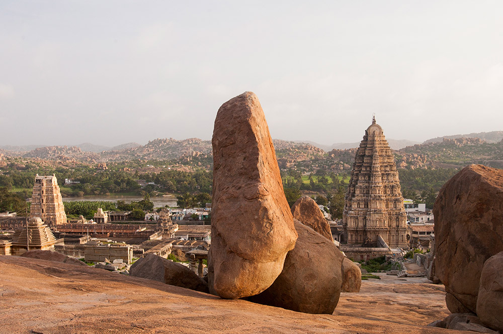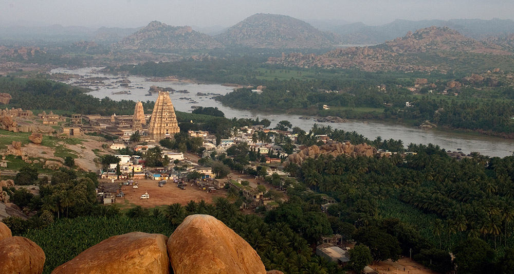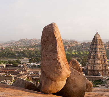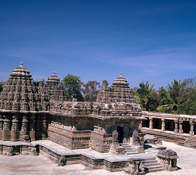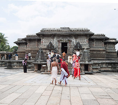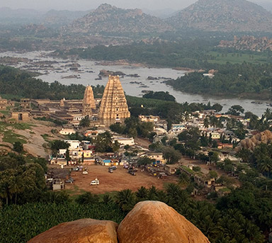 over 25 sq km. On the way, one can visit beautiful temples of Belur and Halebid. From Hampi, visit Ahiole Paddakal and Badami. These three sites are known as the cradle of temple architecture in India from where the various styles of temples design evolved. From Badami one can drive to