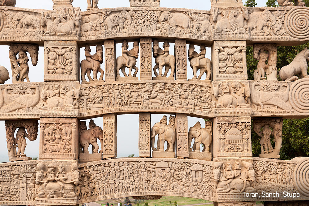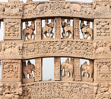 the seven major tribes in the state through their crafts. Bhopal, is also a base for the excursion to Sanchi Stupa, oldest surviving monument in India. The four entrance gates of the Sanchi Stupa, called the ‘torans,’ date back to 2100 years and are the most beautiful examples of the